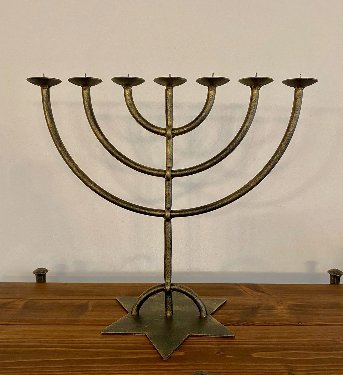 Bougeoir Menorah forgé – chandelier juif à sept branches