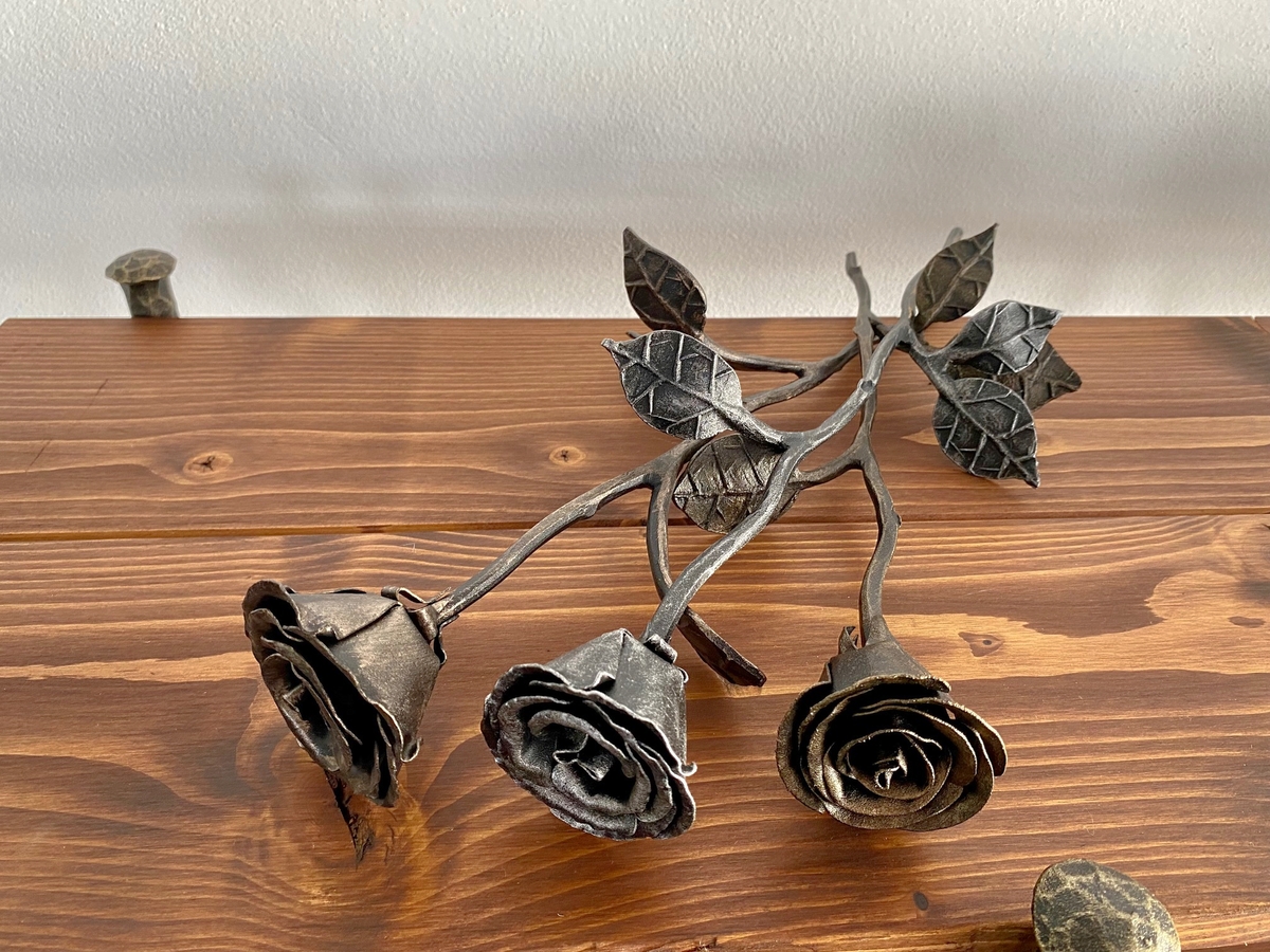 Cadeau pour femmes – roses forgées à la main en patine dorée, argentée ou cuivrée